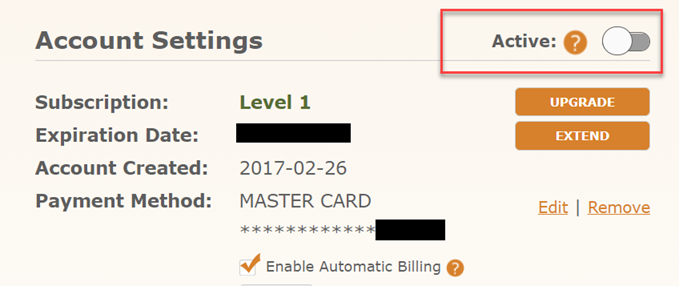 Please see in below screenshot the location of the Active button. Turn OFF this setting to deactivate your account & you will never be charged again.